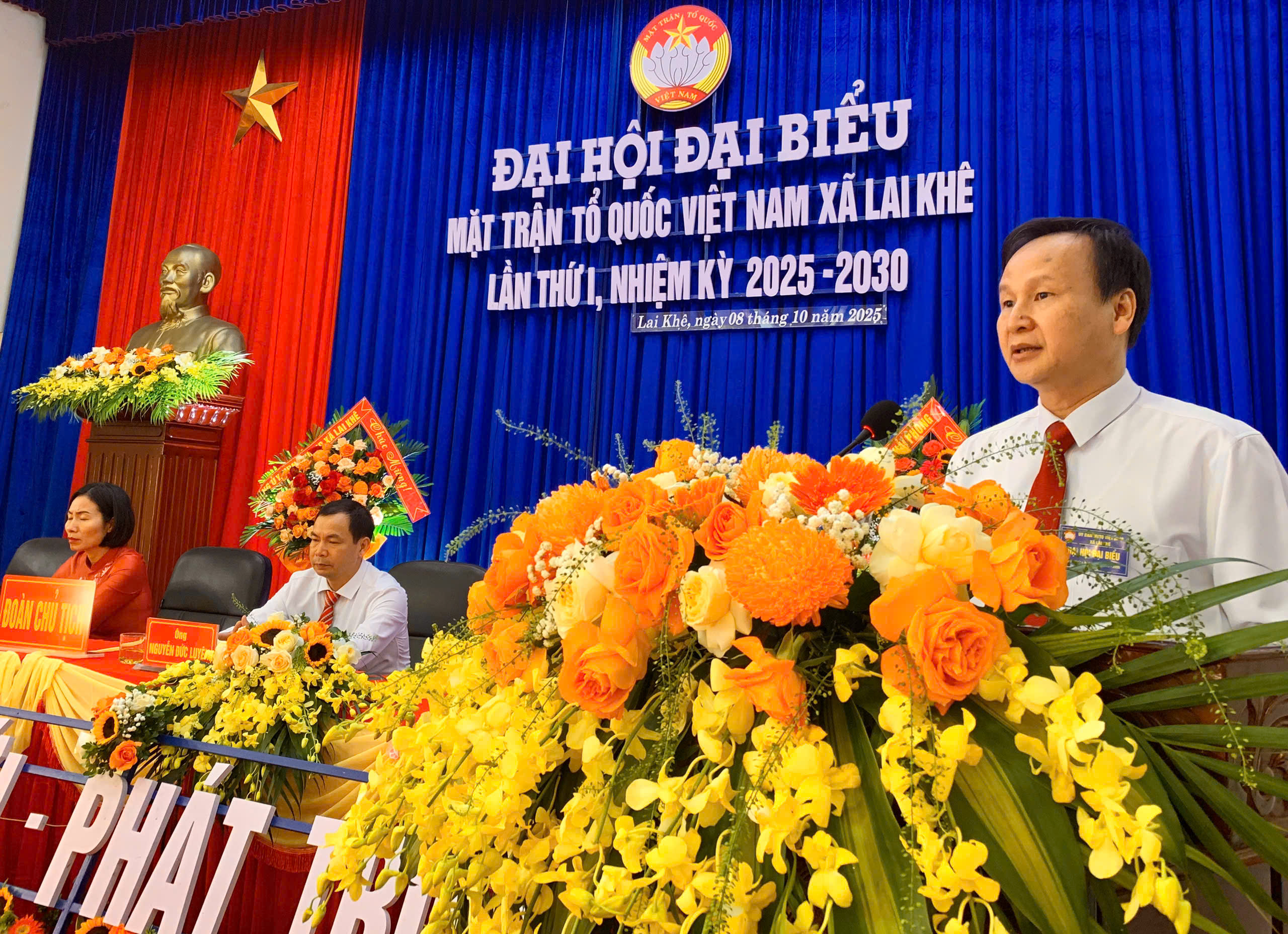 Tặng hoa chúc mừng và phát biểu tại đại hội, lãnh đạo UBMTTQ Việt Nam thành phố và đồng chí Lê Hồng Khanh Bí thư Đảng ủy- Chủ tịch HĐND xã đề nghị nhiệm kỳ mới UB MTTQ việt nam và các tổ chức thành viên xã tiếp tục đẩy mạnh vận động tuyên truyền, tích cực phát động các cuộc vận động, các phong trào thi đua cũng như tích cực hưởng ứng các phong trào thi đua do các cấp phát động, xây dựng tổ chức MTTQ và các đoàn thể xã Lai Khê ngày càng vững mạnh.