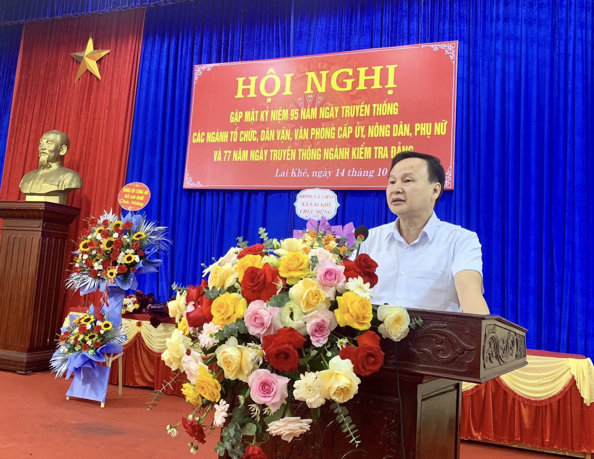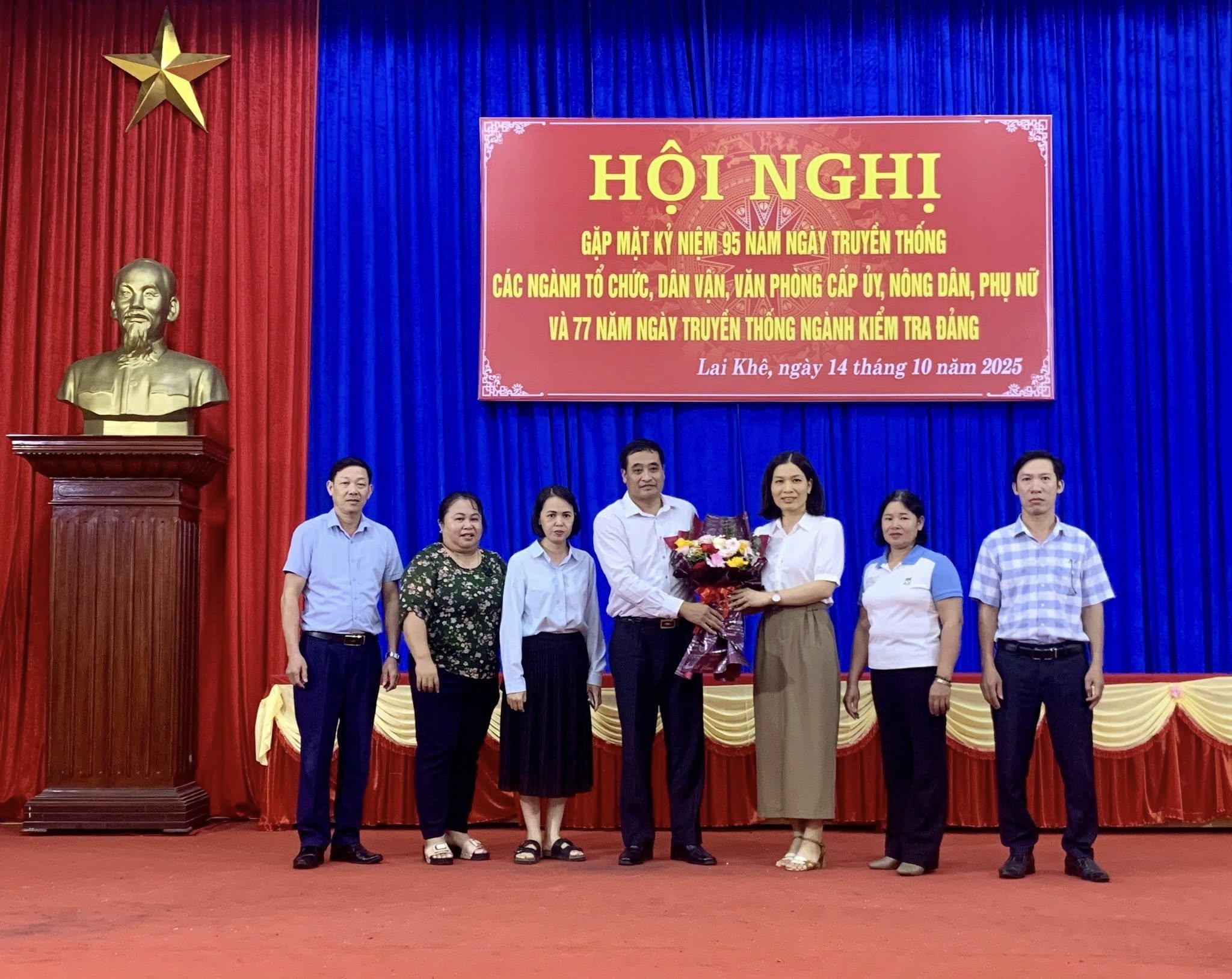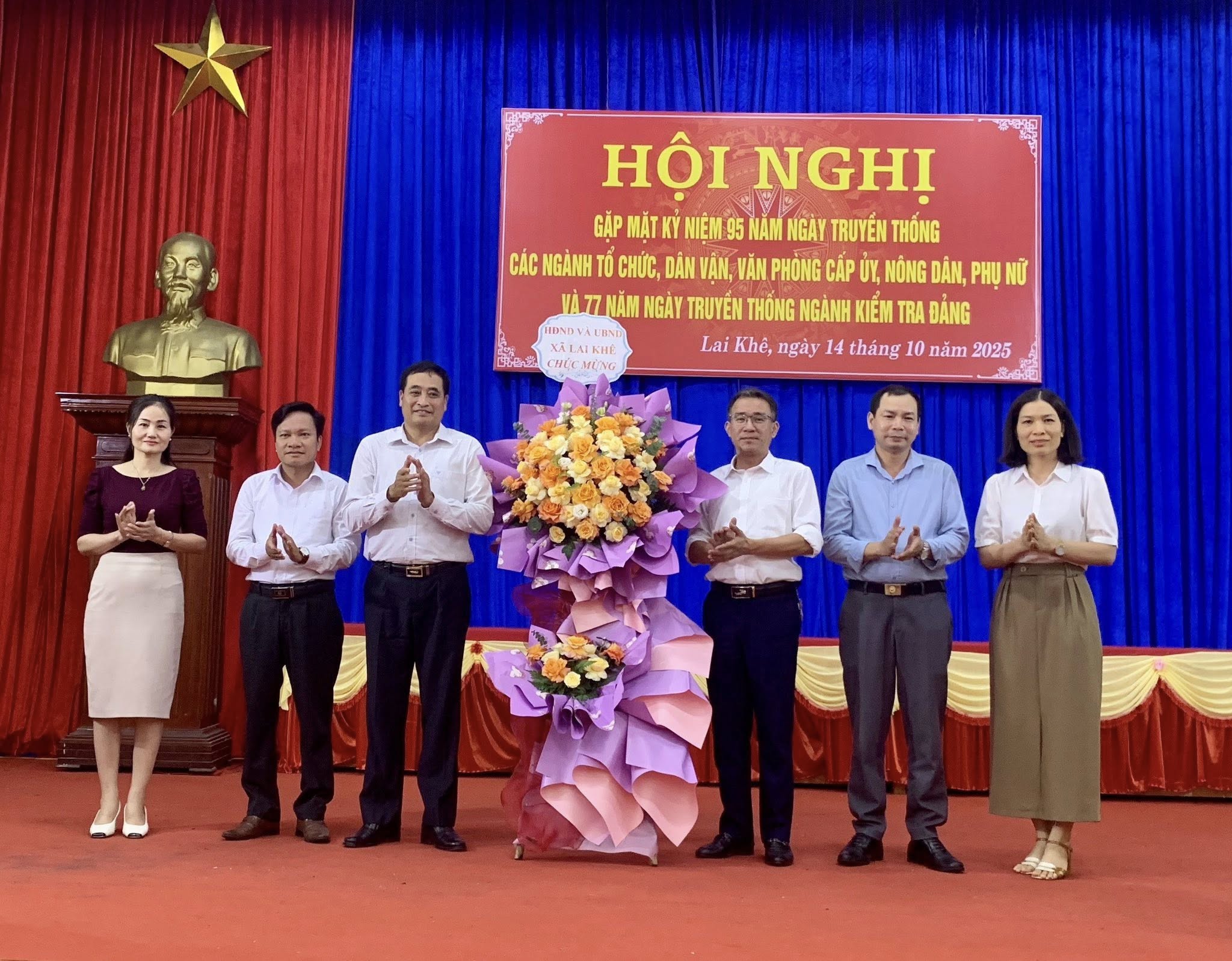 Chiều 14.10, xã Lai Khê tổ chức Hội nghị gặp mặt cán bộ, công chức các cơ quan chuyên trách nhân kỷ niệm 95 năm Ngày truyền thống ngành Tổ chức xây dựng Đảng (14/10), Ngày truyền thống công tác Dân vận của Đảng (15/10), Ngày truyền thống Văn phòng cấp ủy (18/10), Ngày thành lập Hội Nông dân Việt Nam (14/10) và Hội Liên hiệp Phụ nữ Việt Nam (20/10) và 77 năm Ngày truyền thống ngành Kiểm tra Đảng (16/10).