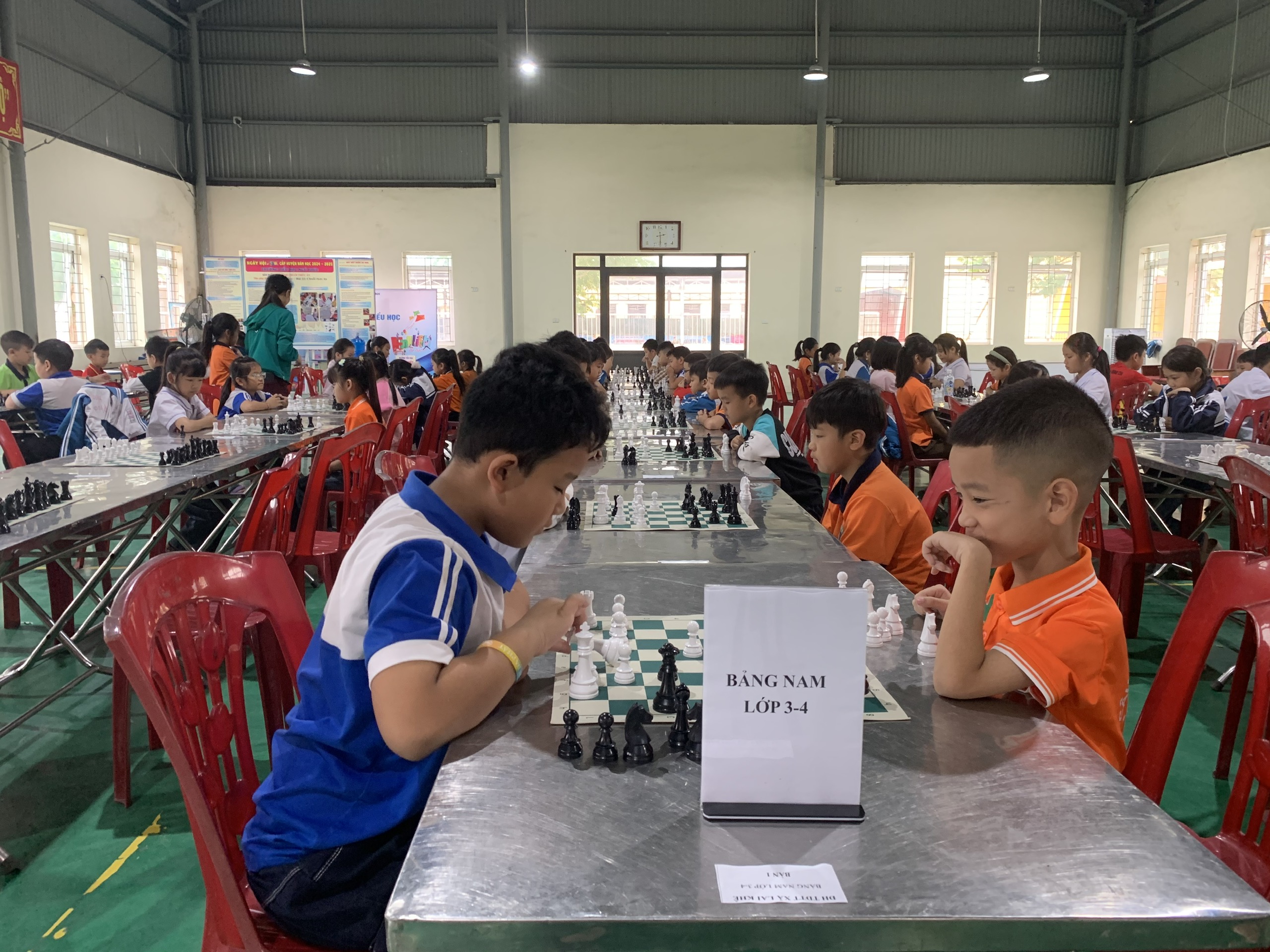 Môn cờ vua đã thu hút tham gia của 100 vận động viên đến từ 05 đơn vị trường Tiểu học trên địa bàn xã tranh tài ở 6 bộ huy chương gồm nội dung nam lớp 1,2, nữ lớp 1,2; nam lớp 3,4, nữ lớp 3,4; nam lớp 5 và nữ lớp 5.