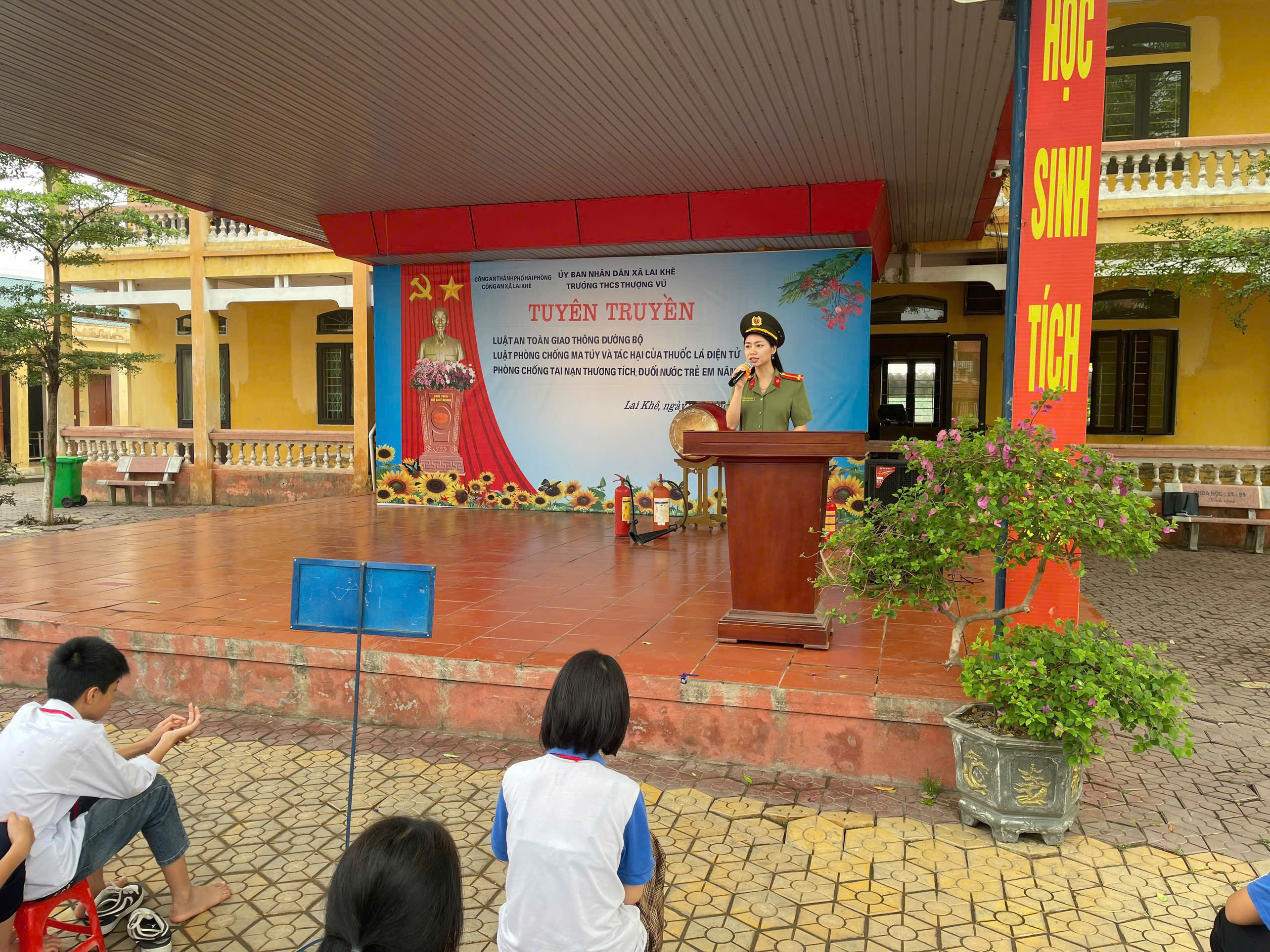 Công an xã Lai Khê phối hợp Trường THCS Thượng Vũ tổ chức tuyên truyền, tập huấn PCCC&CNCH, phòng chống đuối nước; phổ biến pháp luật về ma túy và tác hại thuốc lá điện tử cho cán bộ, giáo viên và học sinh