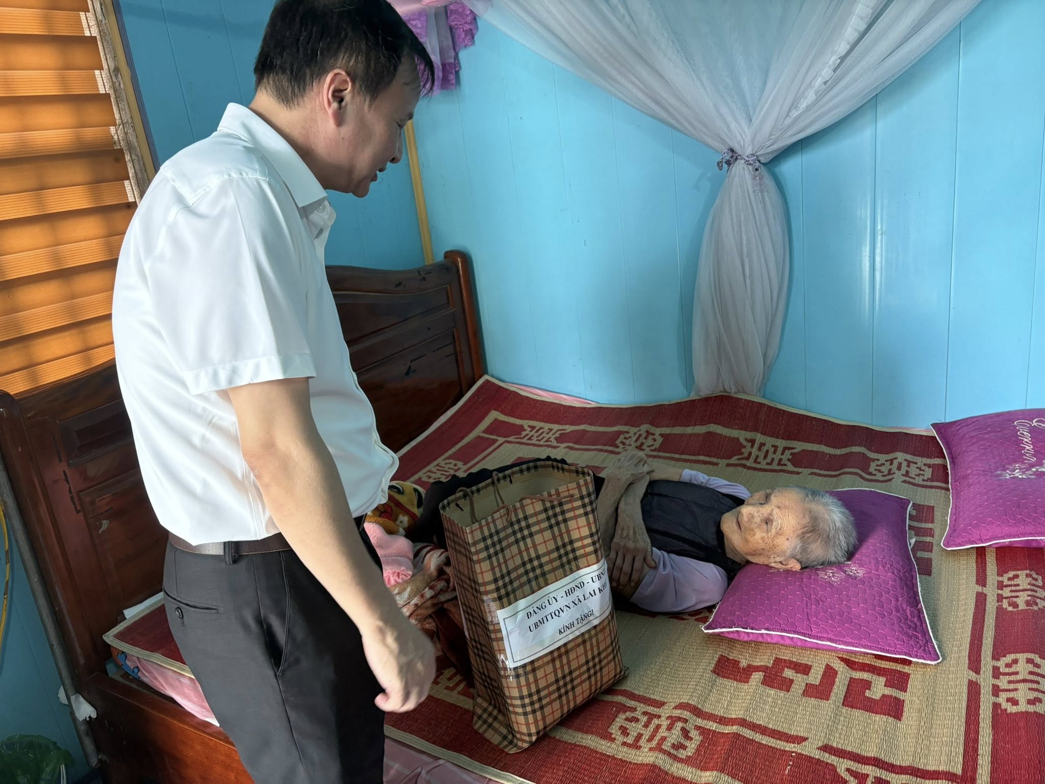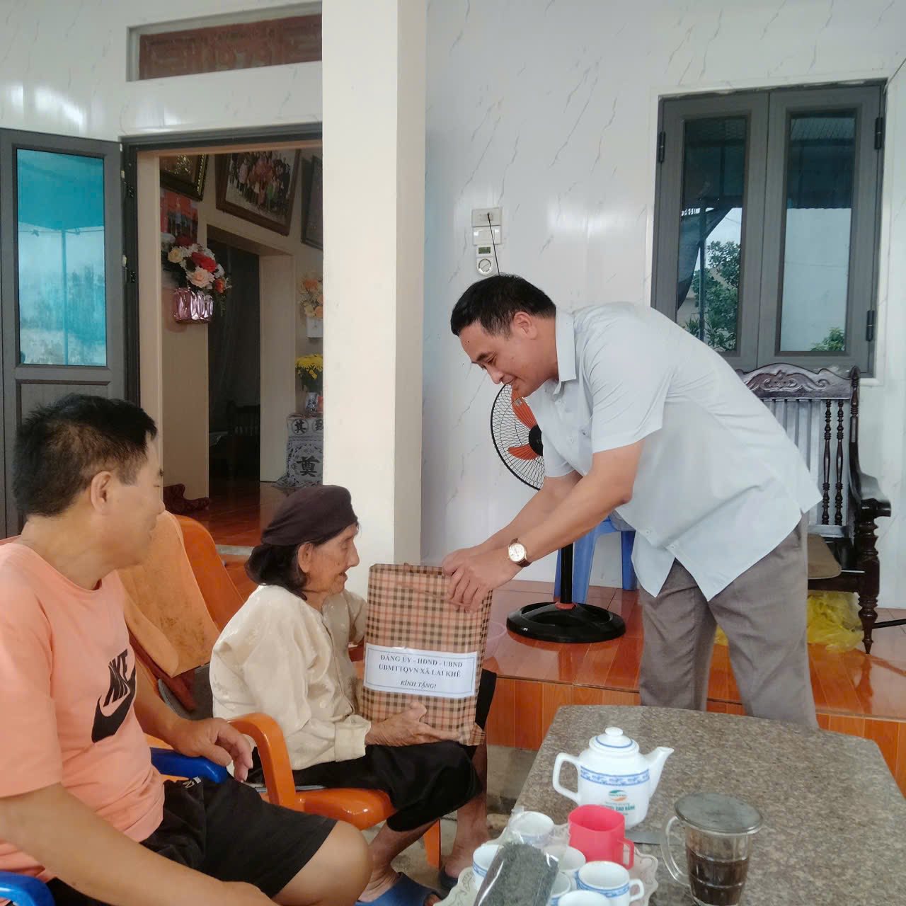 Tại các nơi đến thăm, tặng quà các cụ cao tuổi, các đồng chí Lãnh đạo xã ân cần thăm hỏi sức khỏe, động viên các cụ sống vui, sống khỏe.