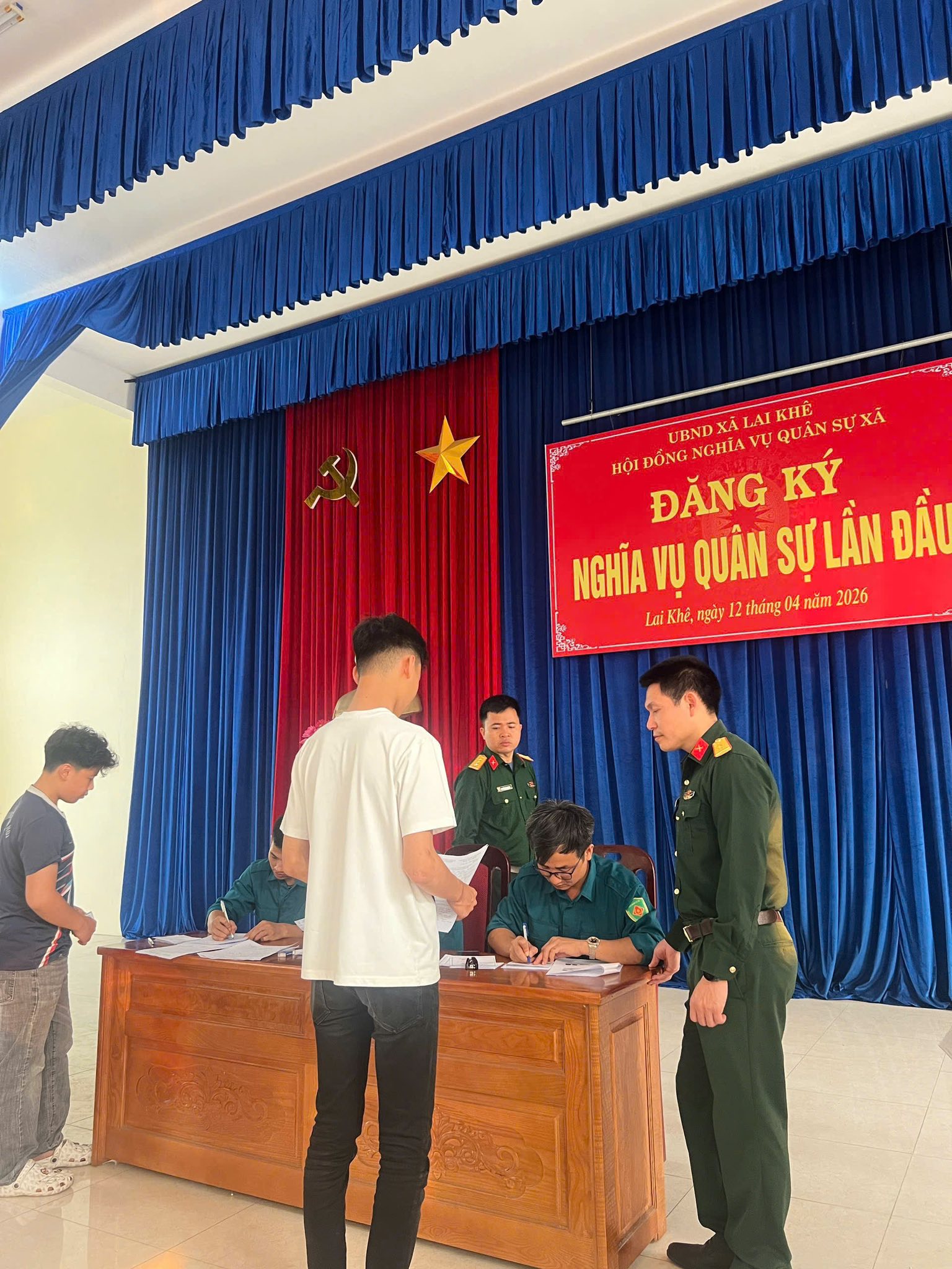 Thực hiện Kế hoạch của Ban Chỉ huy Quân sự xã Lai Khê về đăng ký nghĩa vụ quân sự, phương tiện kỹ thuật dự bị và công dân trong độ tuổi dân quân tự vệ tháng 4 năm 2026; đồng thời rà soát nguồn công dân trong độ tuổi gọi nhập ngũ năm 2027, ngày 12/4/2026, Ban CHQS xã Lai Khê đã tổ chức đăng ký nghĩa vụ quân sự lần đầu năm 2026 cho nam công dân sinh từ ngày 01/01/2009 đến ngày 31/12/2009.